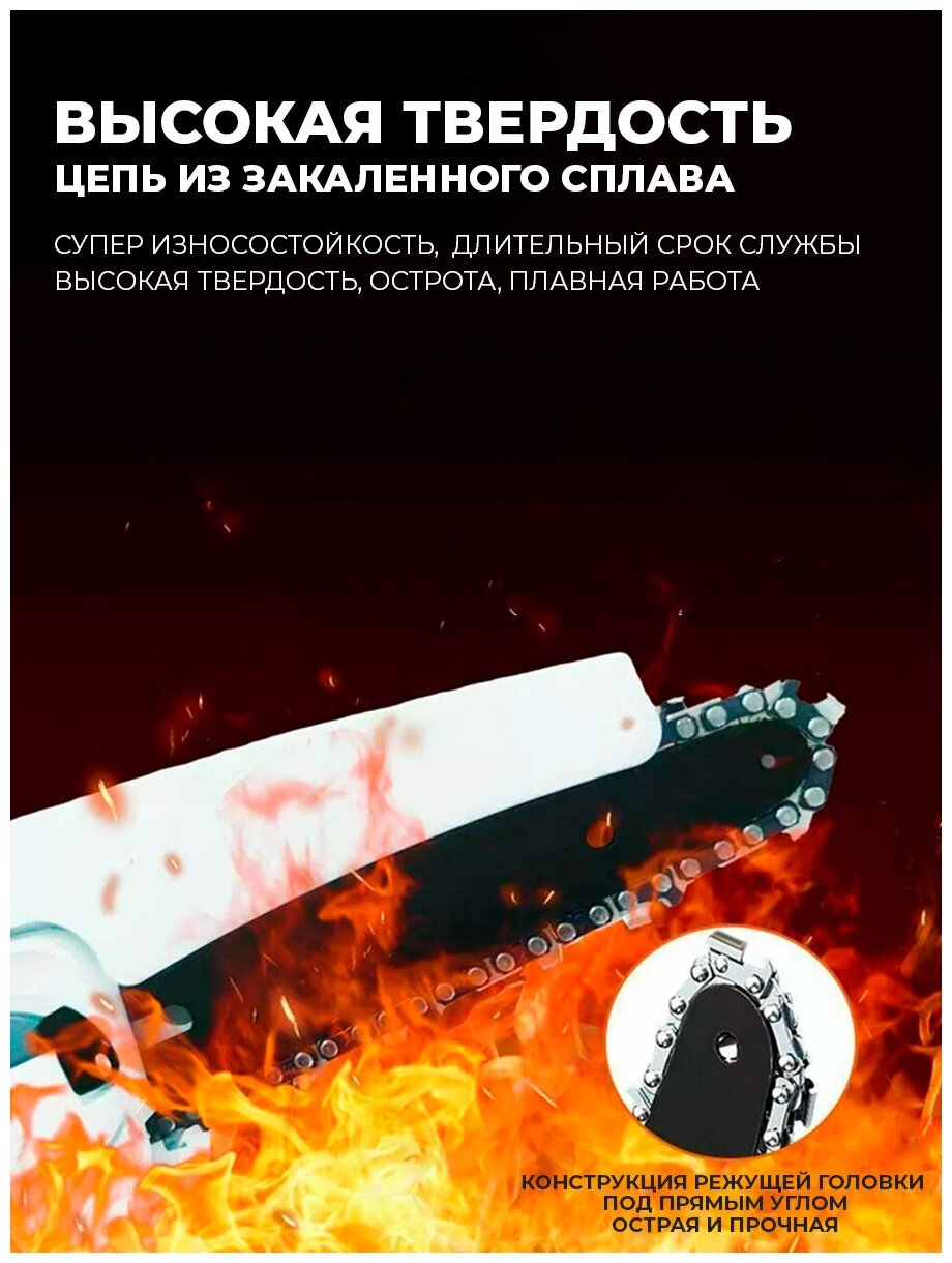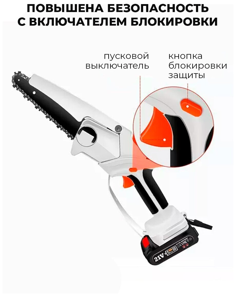 Soft start, electronic motor protection, motor braking, stepless speed control, tool-free chain tension adjustment