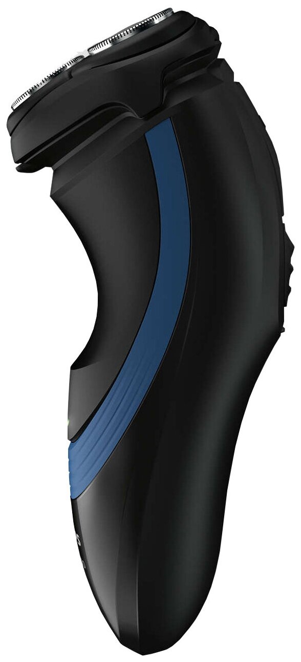 Shaver type: rotary, shaving method: dry, power supply: autonomous, features: trimmer, number of shaving elements: 3, battery type: Li-ion, included: protective cap, cleaning brush