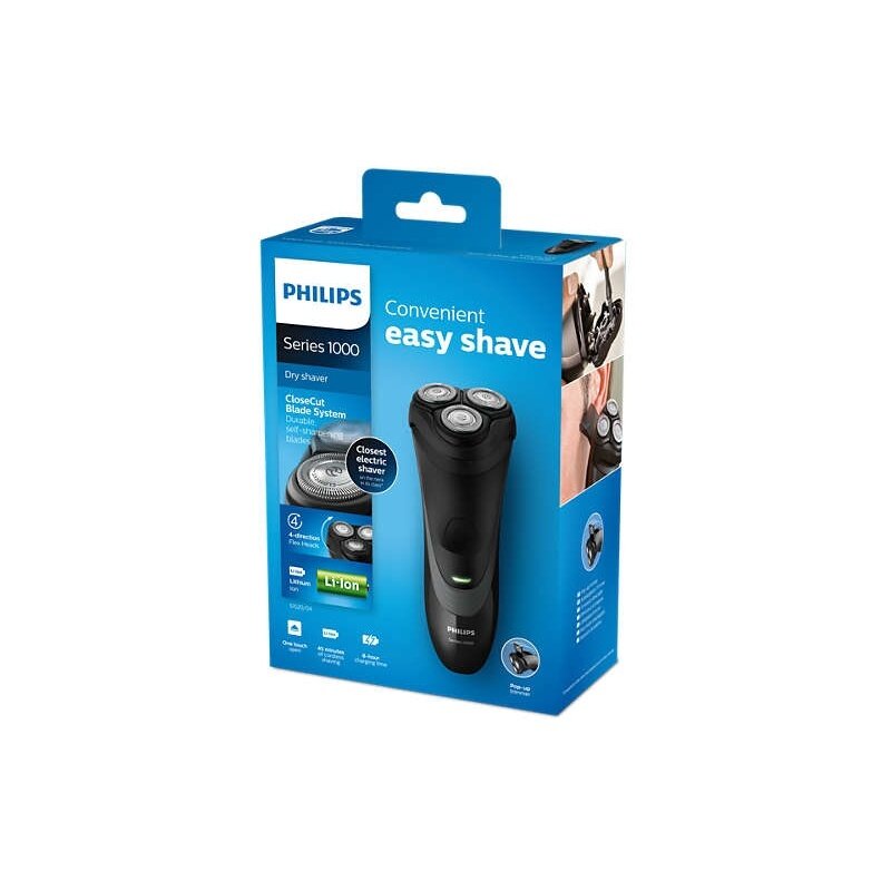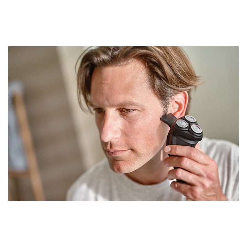 Shaver type: rotary, shaving method: dry, power supply: autonomous, features: trimmer, number of shaving elements: 3, battery type: Li-ion, included: protective cap, cleaning brush