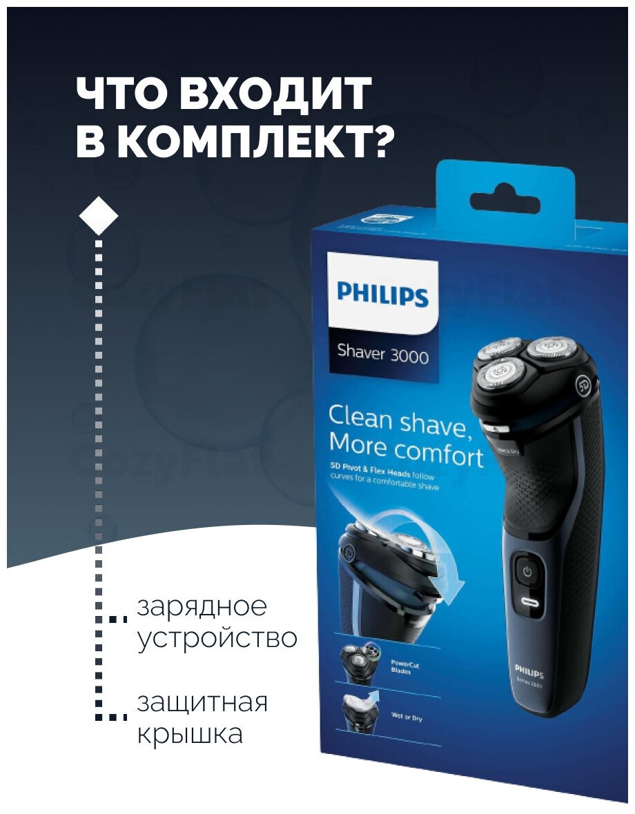 Peculiarities: Fast charging, for sensitive skin, non-slip insert on the handle, trimmer, trimmer, non-slip rubberized handle, 5D swivel flexible heads