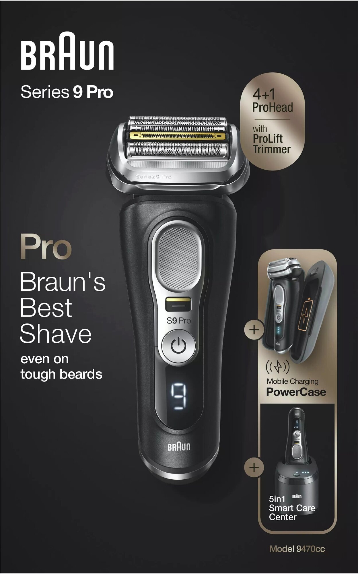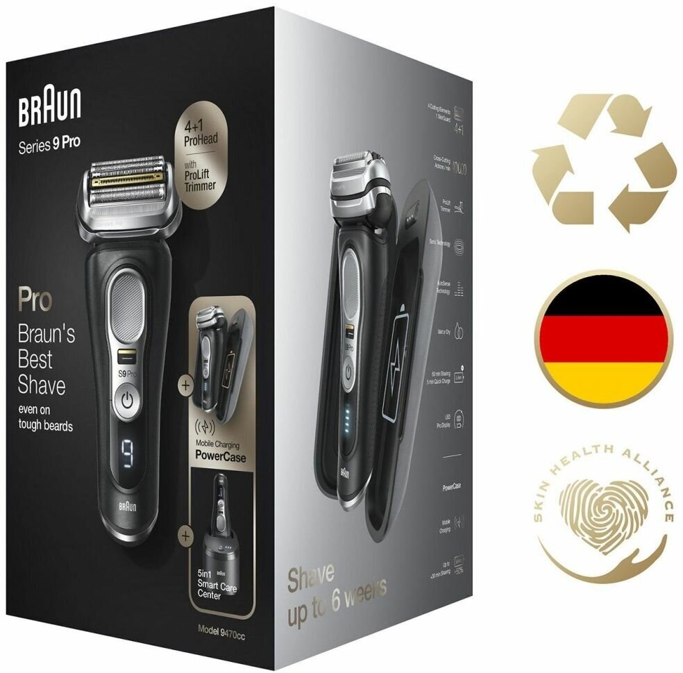 Razor type: foil, shaving method: wet, dry, power supply: autonomous / mains, features: fast charging, display, non-slip handle insert, trimmer, number of shaving elements: 5, waterproof case