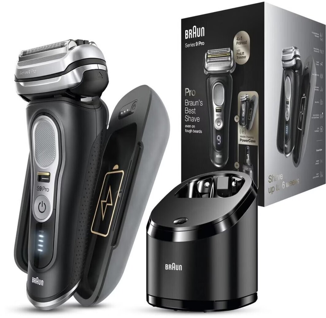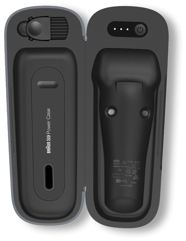 Electric shaver, charging cable, cleaning brush, PowerCase, cleaning and charging station 5 in 1 with a cartridge for it