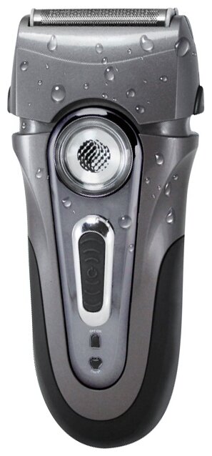 Razor type: rotary, shaving method: dry, power supply: autonomous, features: non-slip insert on the handle, trimmer, number of shaving elements: 3, battery type: NiMH, set includes: protective cover, cleansing brush