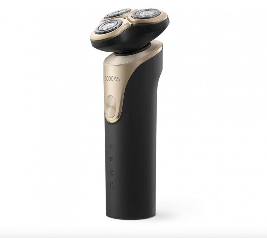 Razor type: rotary, shaving method: dry, power supply: autonomous, features: non-slip insert on the handle, trimmer, number of shaving elements: 3, battery type: NiMH, set includes: protective cover, cleansing brush