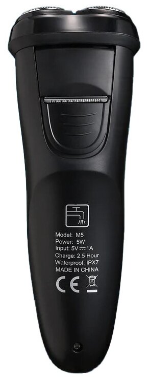 Razor type: rotary, shaving method: dry, power supply: autonomous, features: non-slip insert on the handle, trimmer, number of shaving elements: 3, battery type: NiMH, set includes: protective cover, cleansing brush