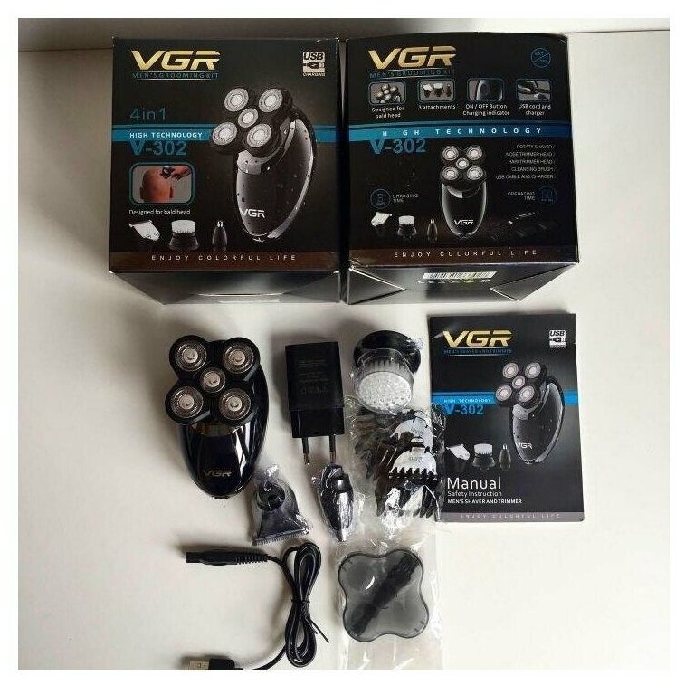 Description: Razor type: rotary, shaving method: wet, dry, power supply: autonomous, features: fast charging, display, for sensitive skin, additional moisturizing, induction charging, hair clipper attachment, nutrition