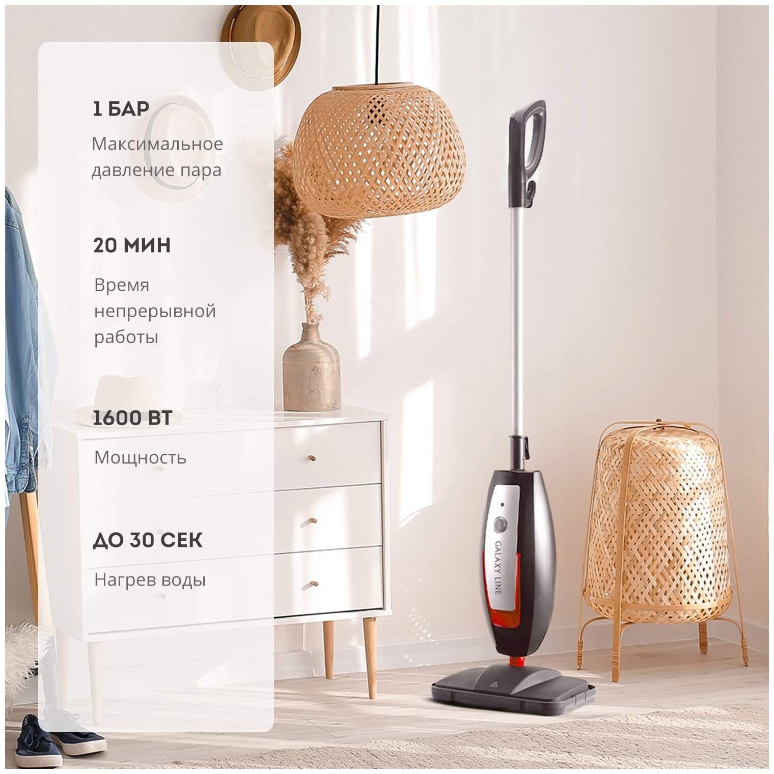 Steam mop Galaxy GL6400, power 1600 W, continuous operation time up to 20 minutes