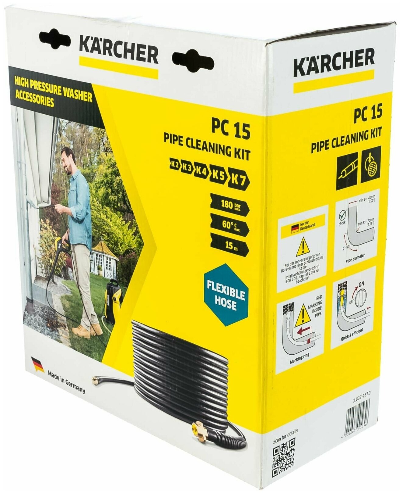 Type: nozzle, pipe cleaning hose, Mini washer and accessories, Mini washer hose, cutter type: jet, cutter length: 1500 cm, hose length: 15 m, ready kit