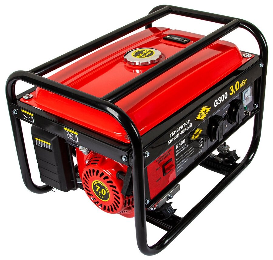 Type: gasoline, rated power: 2800 W, maximum power: 3000 W, start: manual, number of phases: 1, engine power: 7 HP, weight: 47 kg, cooling type: air, noise level: 97 dB, Number of sockets 220 V: 2, features: deep
