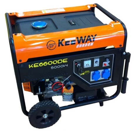Type: gasoline, rated power: 5000 W, maximum power: 5500 W, start: manual, electric, number of phases: 1, engine power: 11 HP, weight: 77 kg, cooling type: air, noise level: 72 dB, Number of sockets 220 V: 2