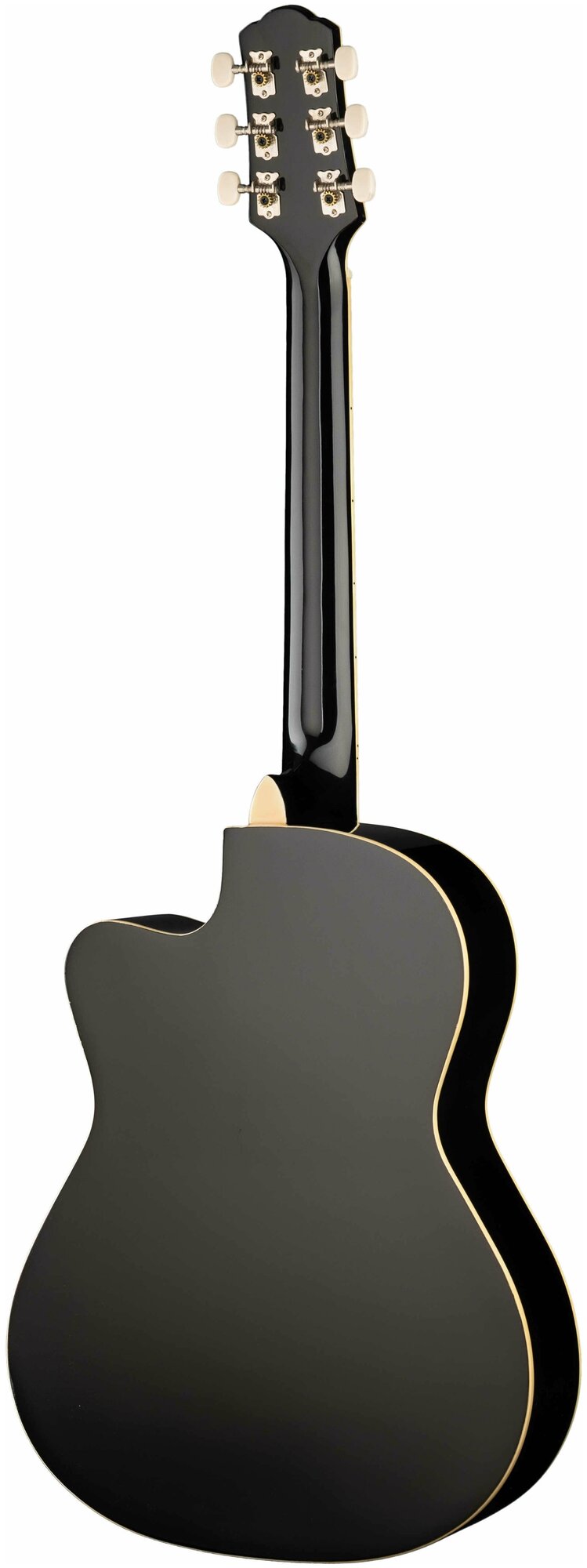 Type: acoustic guitar, number of strings: 6, scale length: 650 mm, cutaway, body material: catalpa, neck material: mahogany, color: black