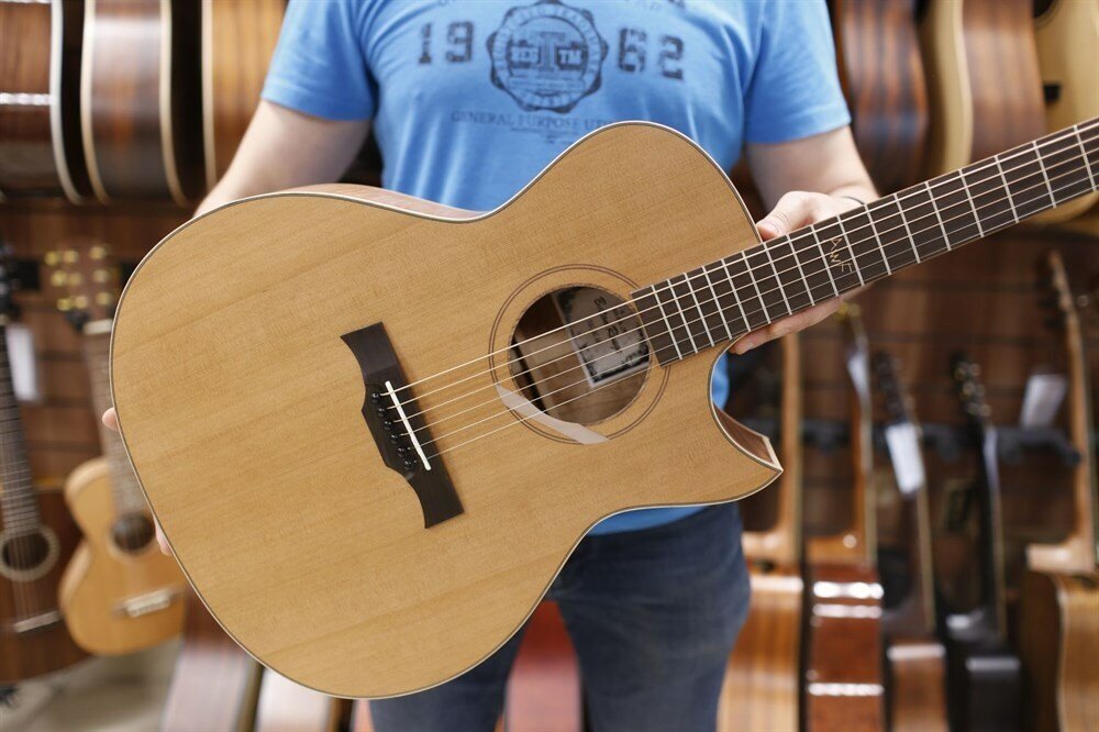 Type: western guitar, body type: grand auditorium, orientation: right-handed, number of frets: 20, number of strings: 6, scale length: 648 mm, pickup availability: no pickup, cutaway, body material: cedar, mahogany