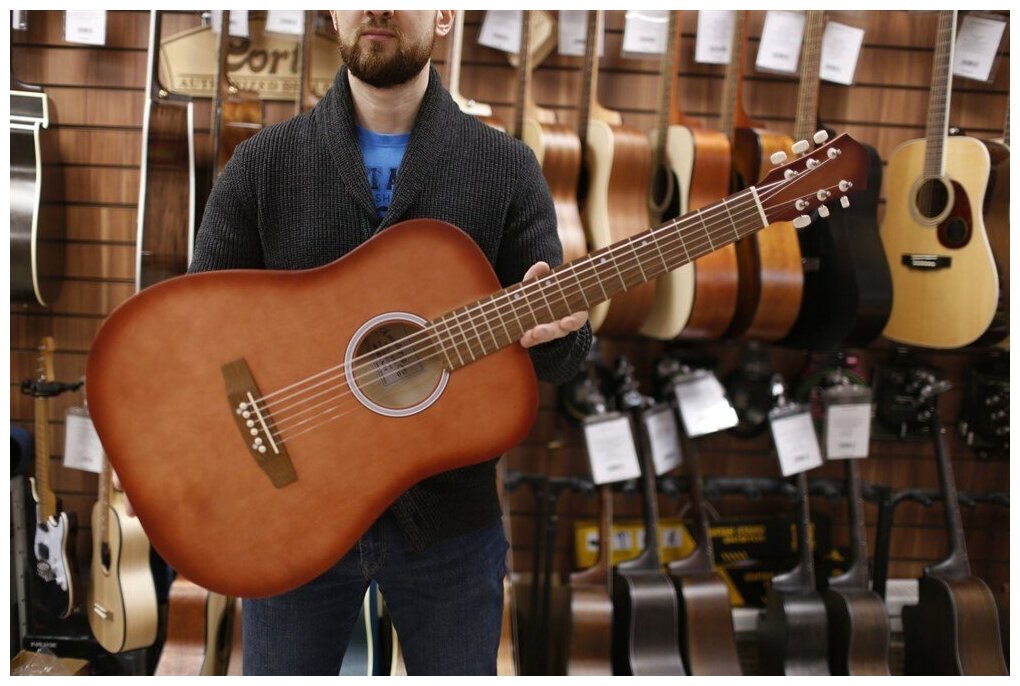 Type: western guitar, body type: drednought, orientation: right-handed, number of frets: 19, number of strings: 6, scale length: 650 mm, presence of pickup: without pickup, body material: birch, neck material: -, color: kra