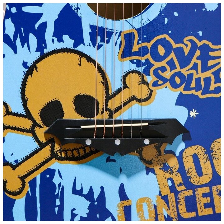 Type: western guitar, body type: folk, orientation: right-handed, number of frets: 18, number of strings: 6, cutaway, neck material: maple, color: blue
