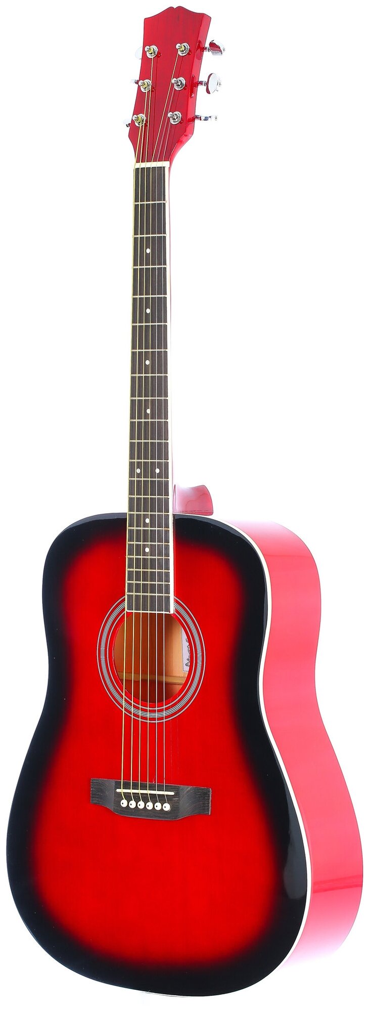 Type: western guitar, body type: drednought, number of frets: 20, number of strings: 6, neck material: nato, color: red
