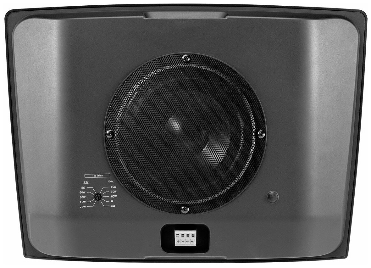 JBL CONTROL HST wall speaker with wide coverage area. 100W - 8ohm, up to 60W - 70/100V, Grill, U-shaped steel bracket included. Black color.