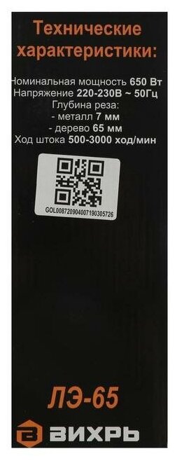 Type of power supply: from the mains, power: 650 W, functions: pendulum stroke, stroke frequency adjustment, speed stabilization system, Quick-lock fastening, Inclined cut / cut, cleaning of the cut point - vacuum cleaner connection, soleplate