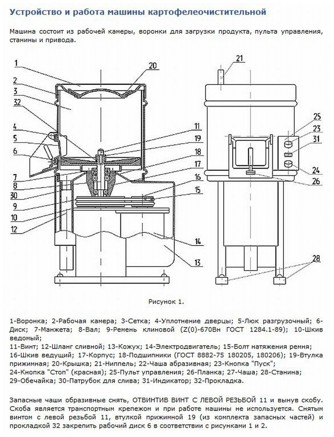 Type: vegetable peeler, body material: stainless steel steel, power: 0.82 kW, installation: floor
