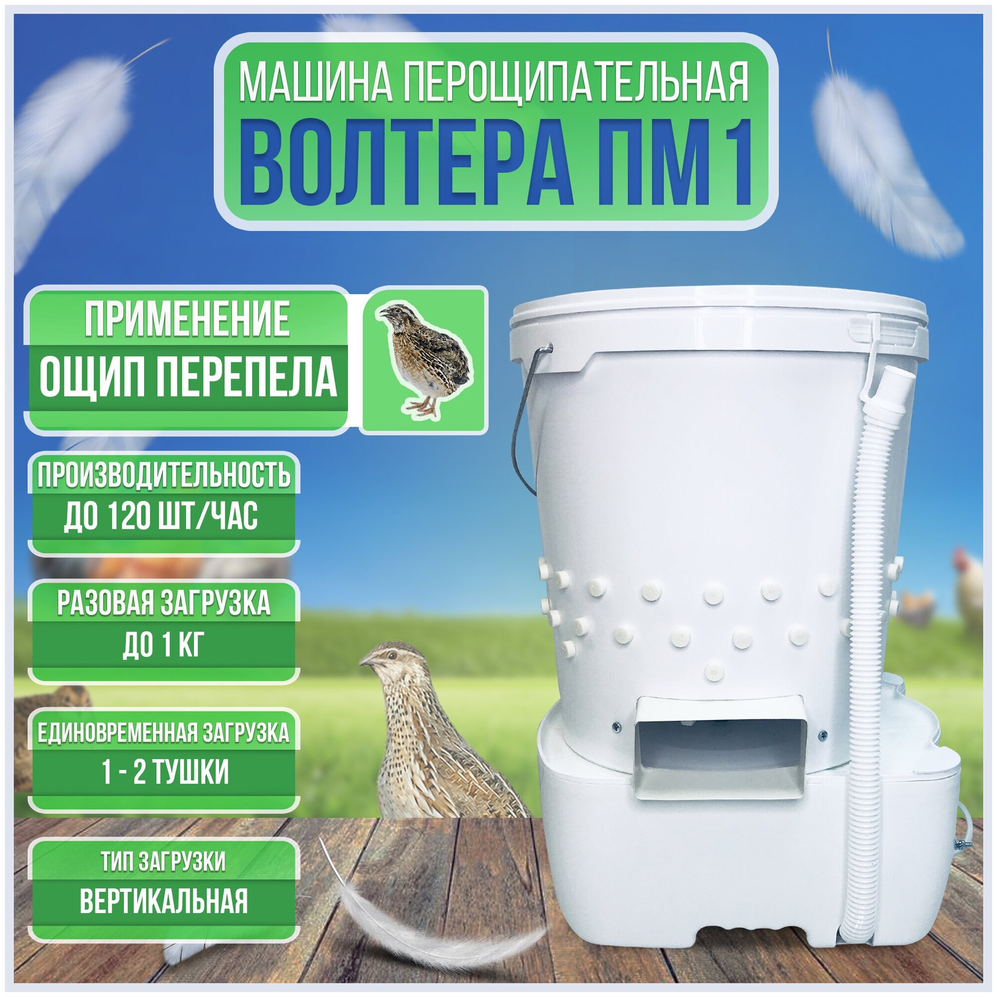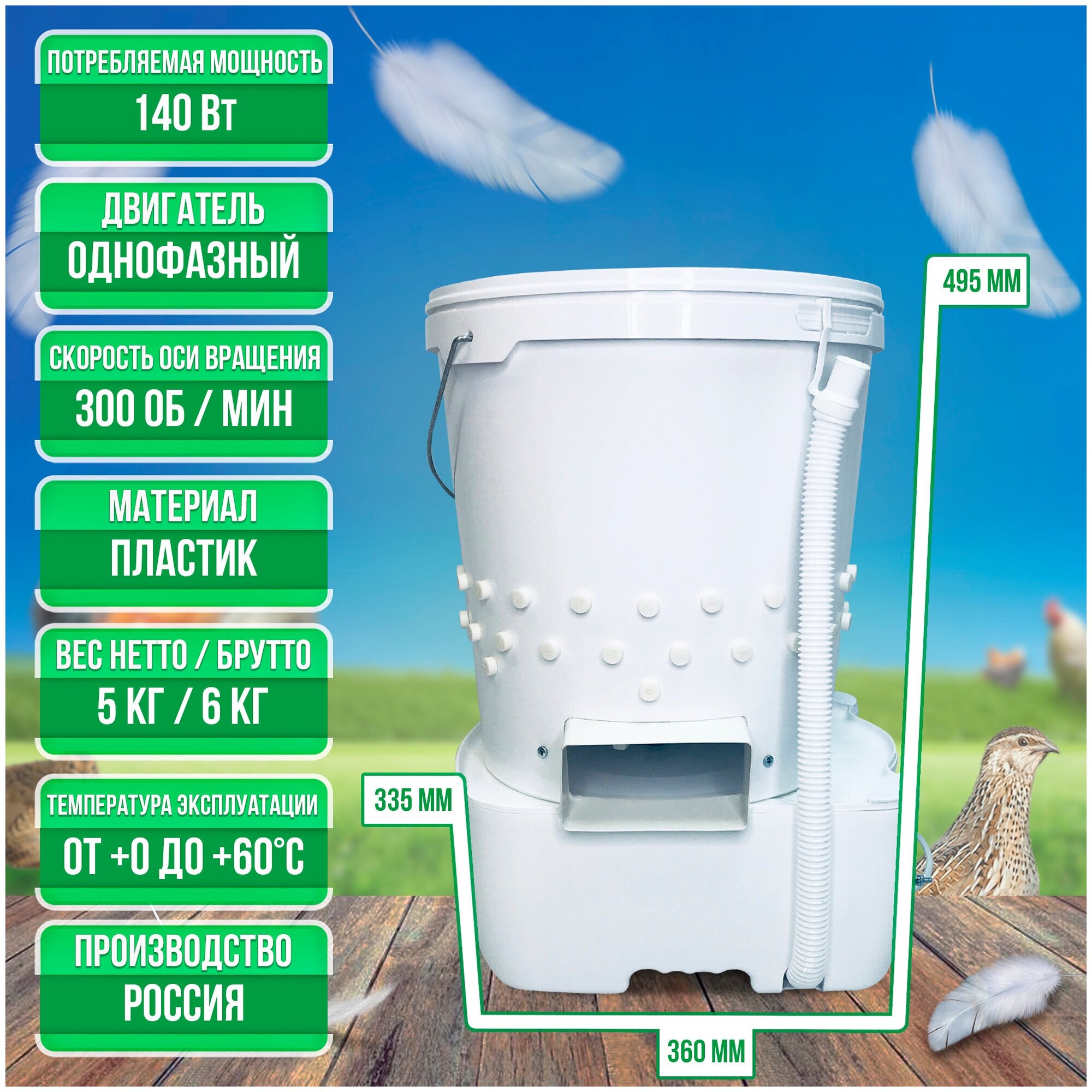 Type: plucking machine, power: 0.14 kW, installation: tabletop, maximum rotation speed: 300 rpm