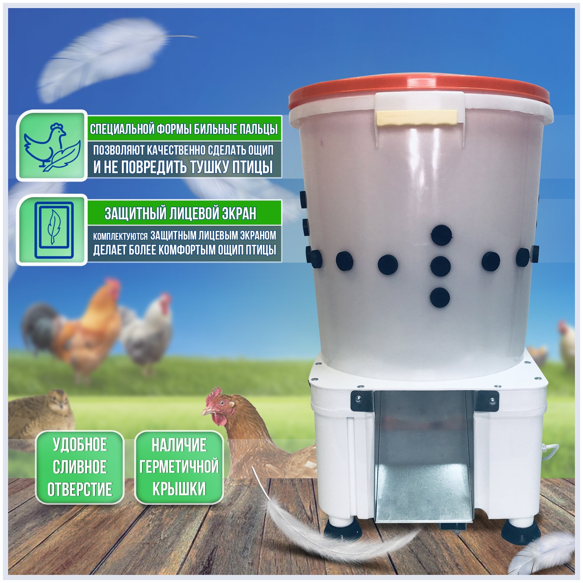 Type: plucking machine, power: 0.42 kW, installation: floor
