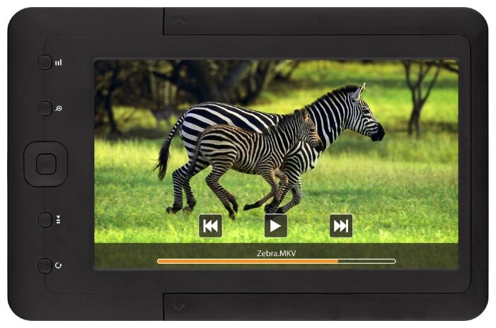 Display type: color LCD, diagonal: 7, design features: built-in backlight, book and document formats: EPub, FB2, PDF, TXT, display resolution: 800x480