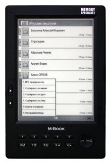 Display type: E-Ink, diagonal: 6", design features: paging buttons, book and document formats: CHM, DJVU, DOC, EPub, FB2, HTML, PDF, TXT, WOLF