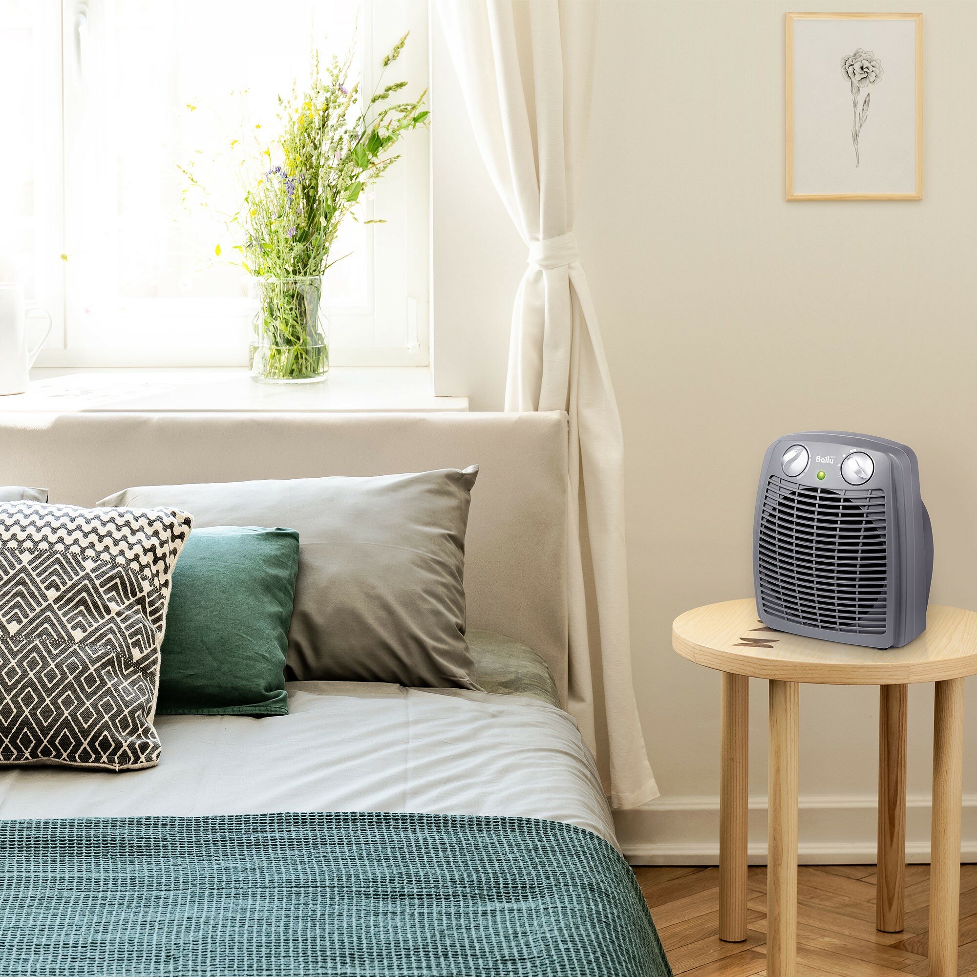 Type of heater: fan heater, room area: 25 m², installation: floor, tabletop, protection systems: overheating shutdown, control: mechanical, features: temperature control, thermostat, heating type