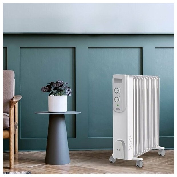 Heater type: oil cooler, room area: 27 m², power consumption: 2.22 kW, installation: floor, protection systems: moisture-proof housing, overheating shutdown, control: mechanical, features: p