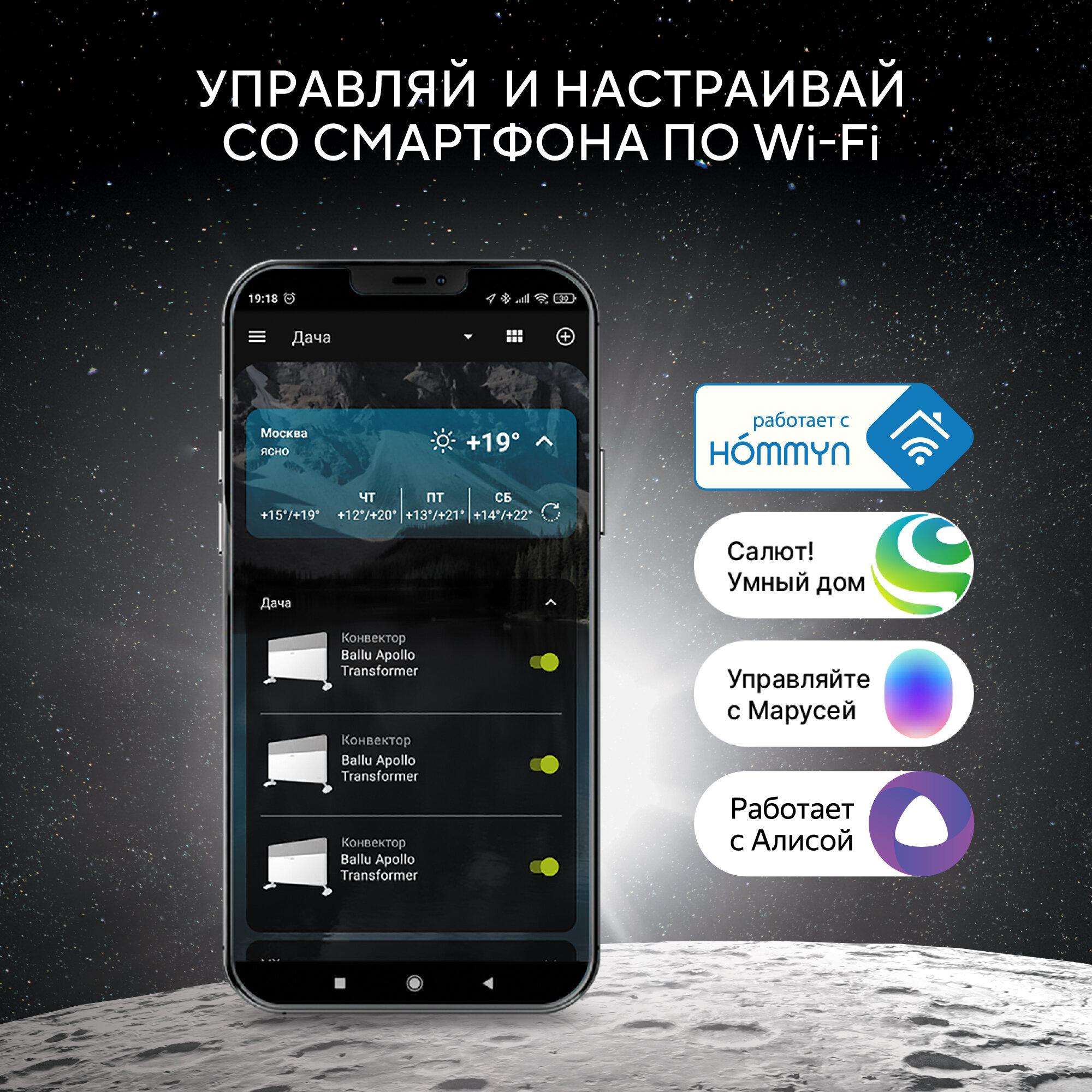 Control from the HOMMYN mobile application via Wi-Fi