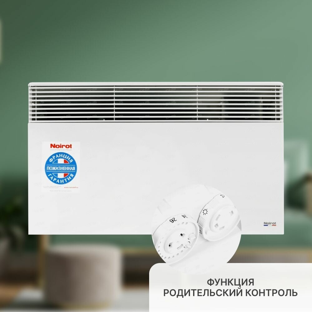 Lineup: Spot E-3 Plus; voltage: 220/230 V; power adjustment; switch with light indicator; maximum surface heating: less than 60°С; auto restart; operating modes: economical, comfortable, antifreeze