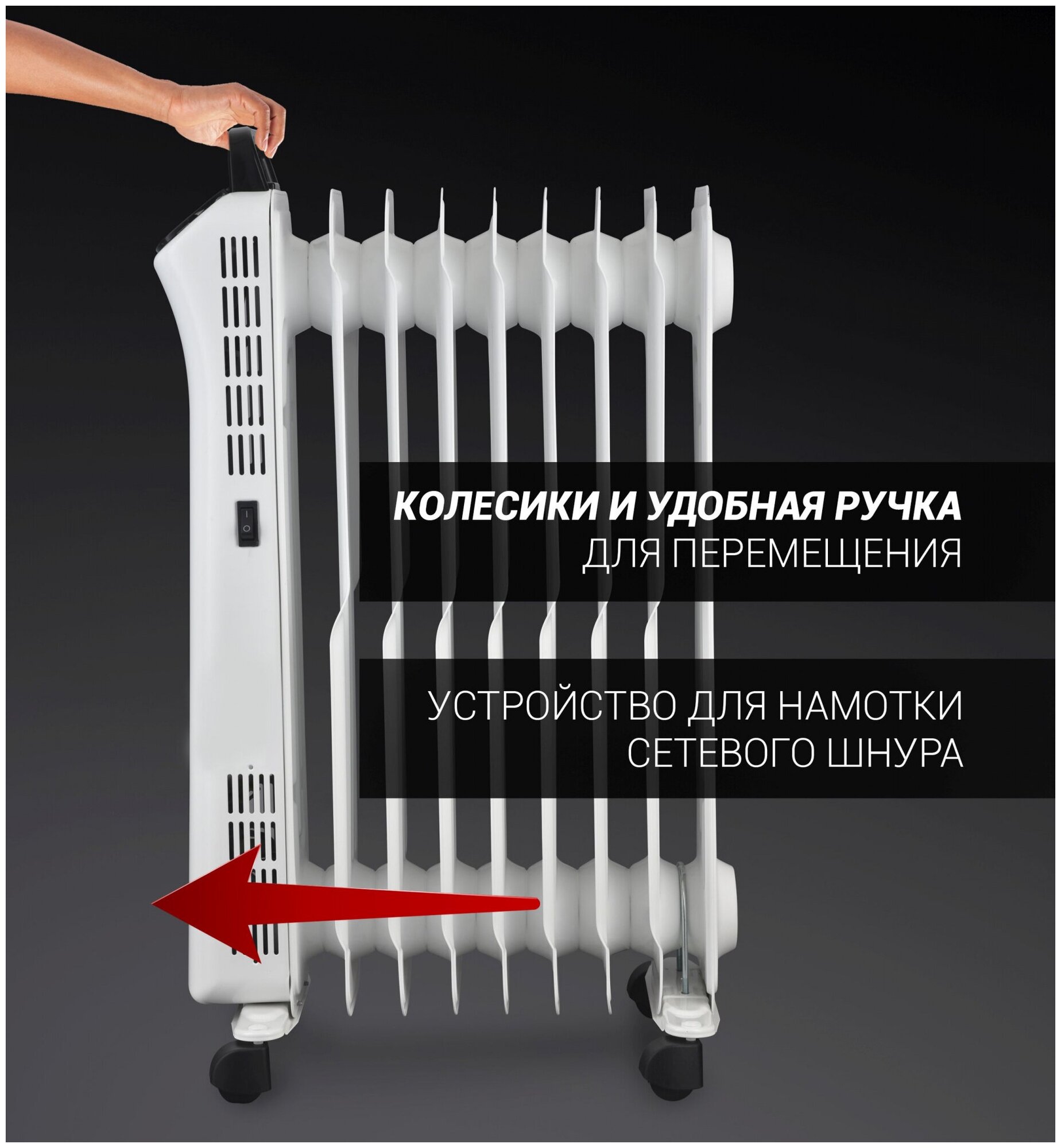 Heater type: oil cooler, room area: 22 m², power consumption: 2 kW, installation: floor, protection systems: tip-over shutdown, overheating shutdown, control: mechanical, special