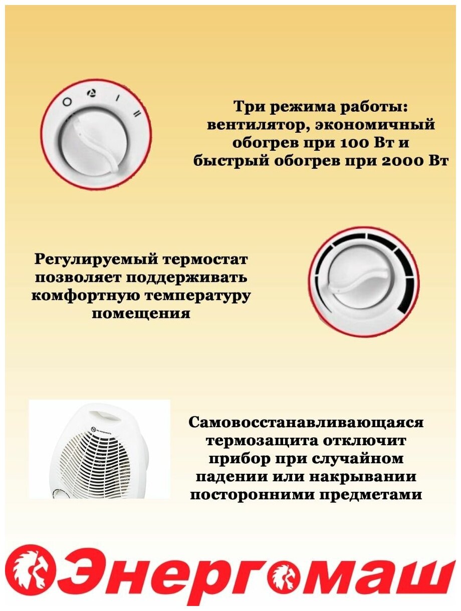 Type of heater: fan heater, protection systems: shutdown in case of overheating