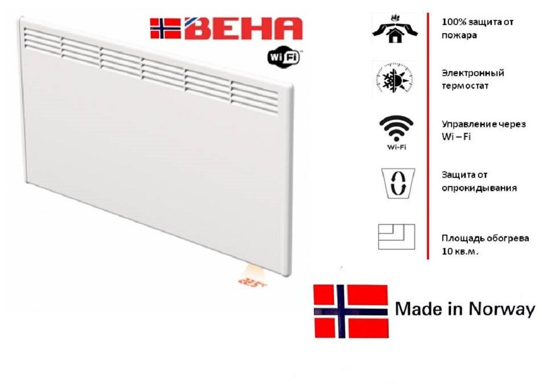 Type of heater: convector, room area: 10 m², installation: floor, wall, protection systems: moisture-proof housing, shutdown in case of tipping over, shutdown in case of overheating, control: electronic, features: