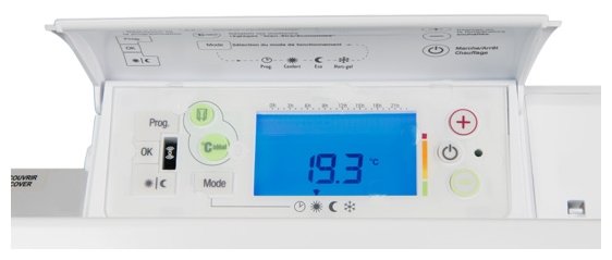 Voltage: 220/230 V; switch with light indicator; Fonte Active 3G® heating element + Resistance surfacique® radiant infrared panel; 5 operating modes; power consumption indicator