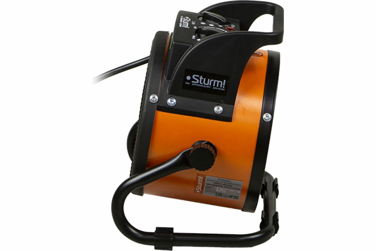 Voltage: 220/230 V; handle for moving; power adjustment; switch with light indicator; fan