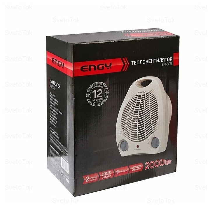 Heater type: fan heater, power consumption: 2 kW, installation: desktop, protection systems: overheating shutdown, features: thermostat, noise level: 45 dB, heating element type: spiral