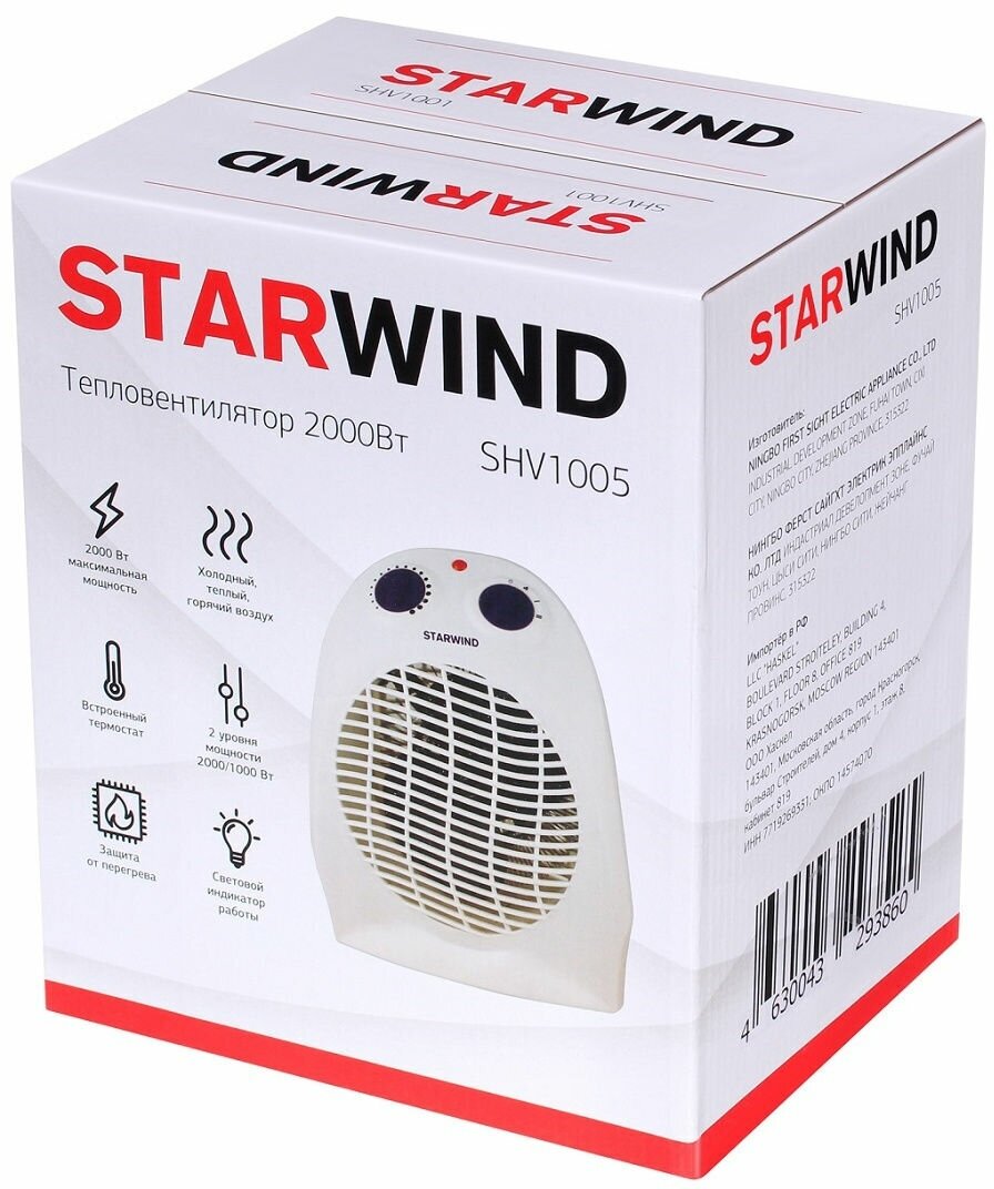 Voltage: 220/240 V; handle for moving; ventilation without heating; power adjustment; switch with light indicator; fan