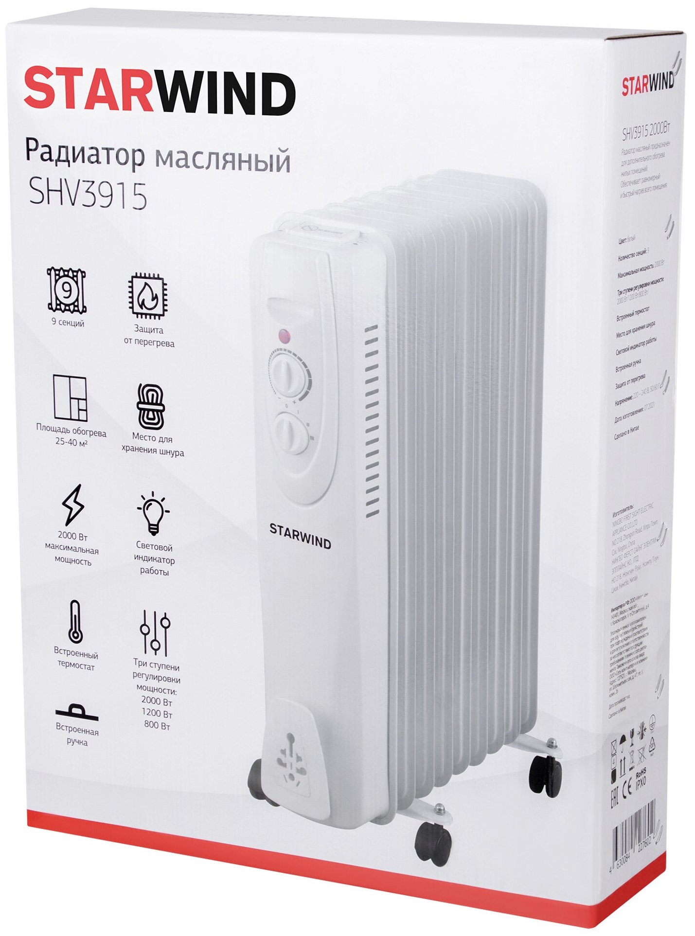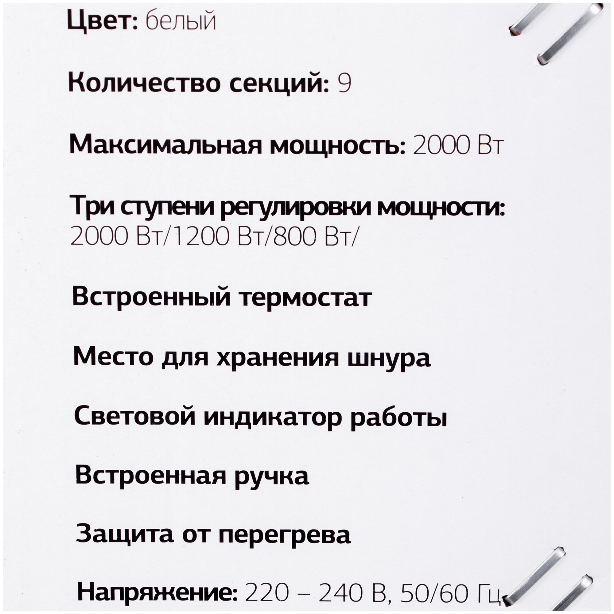 Heater type: oil cooler, room area: 20 m², power consumption: 2 kW, installation: floor, wall, protection systems: tip-over cut-out, overheat cut-off, control: mechanical