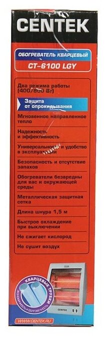 Heater type: infrared, room area: 8 m², installation: floor, protection systems: tip-over shutdown, overheating shutdown, control: mechanical, features: thermostat, heating type