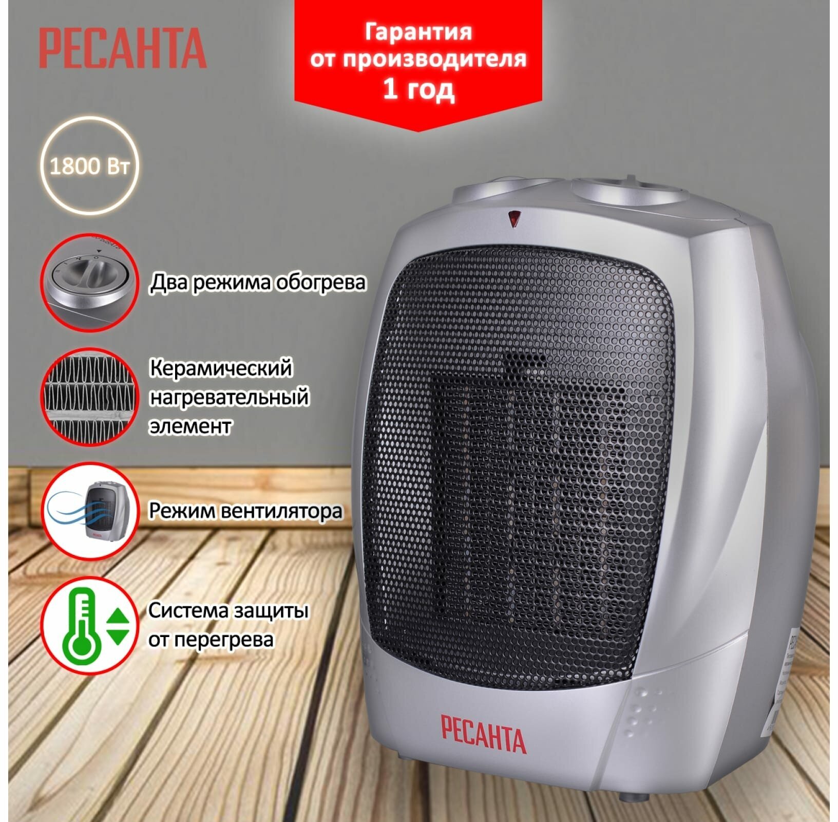 Heater type: fan heater, room area: 16 m², power consumption: 1.80 kW, installation: floor, table, Floor/table, floor, table, protection systems: overtemperature shutdown, Class II, pack