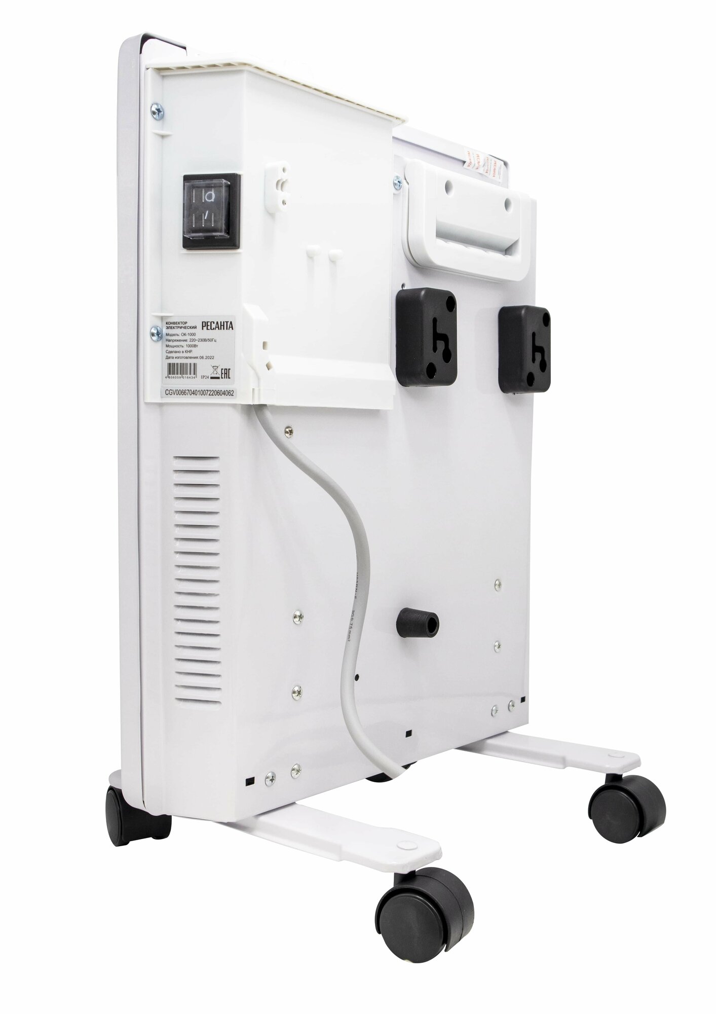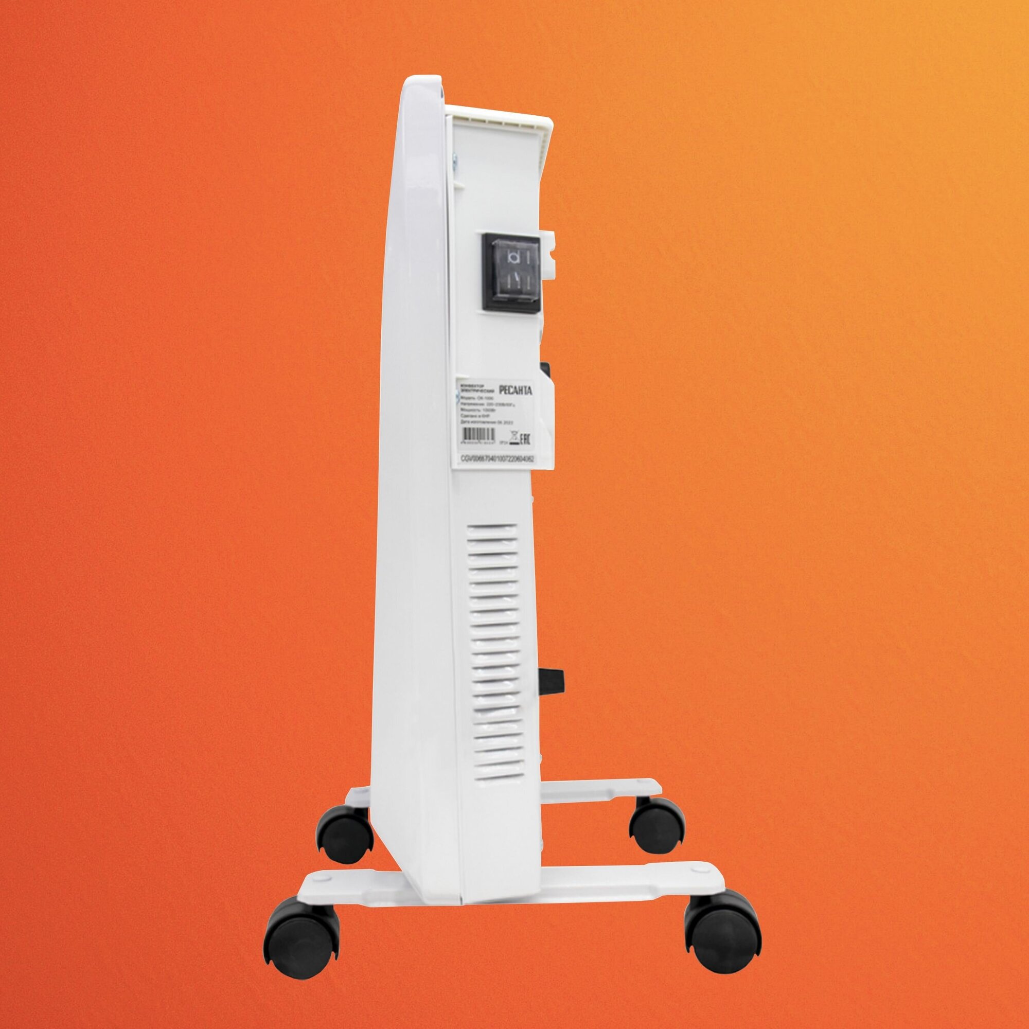 Detailed equipment: Electric convector OK-1000 - 1 pc.; Supports - 2 pcs.; Wheels for support - 4 pcs.; Wall mounting kit - 1 pc.; Instruction manual - 1 pc.