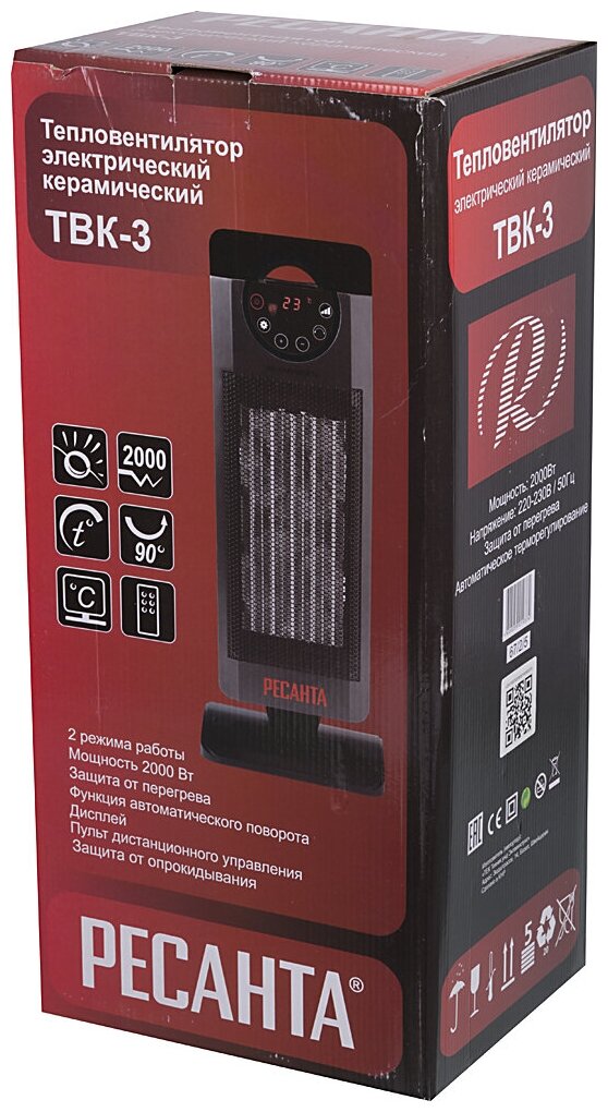 Fan heater - 1 pc., Remote control - 1 pc., Passport instruction, Packing