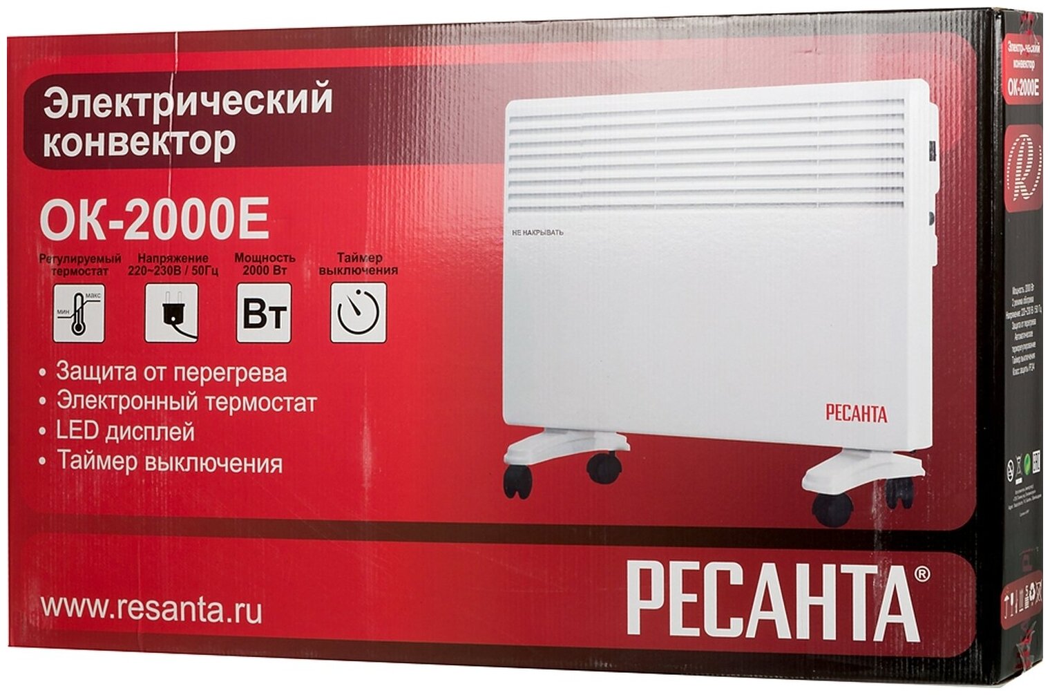 Heater type: convector, room area: 20 m², power consumption: 2 kW, installation: floor, wall, protection systems: moisture-proof housing, overheating shutdown, Frost protection, control: electric