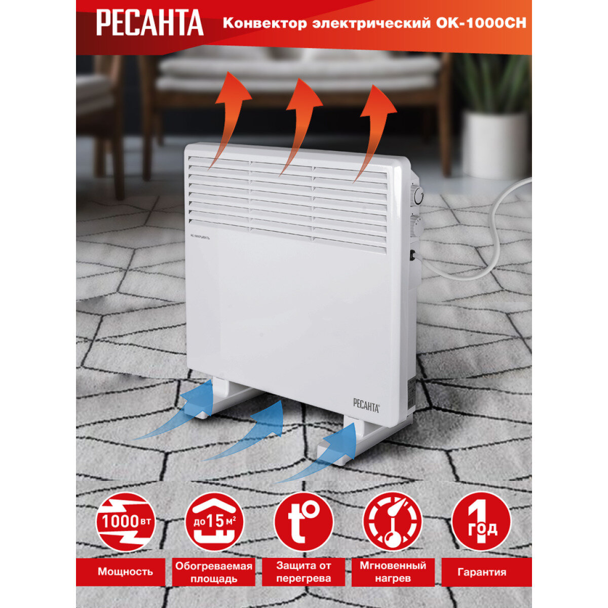 Type of heater: fan heater, installation: floor, wall, protection systems: shutdown in case of overheating, control: mechanical, features: temperature control, thermostat, type of heating element: s�