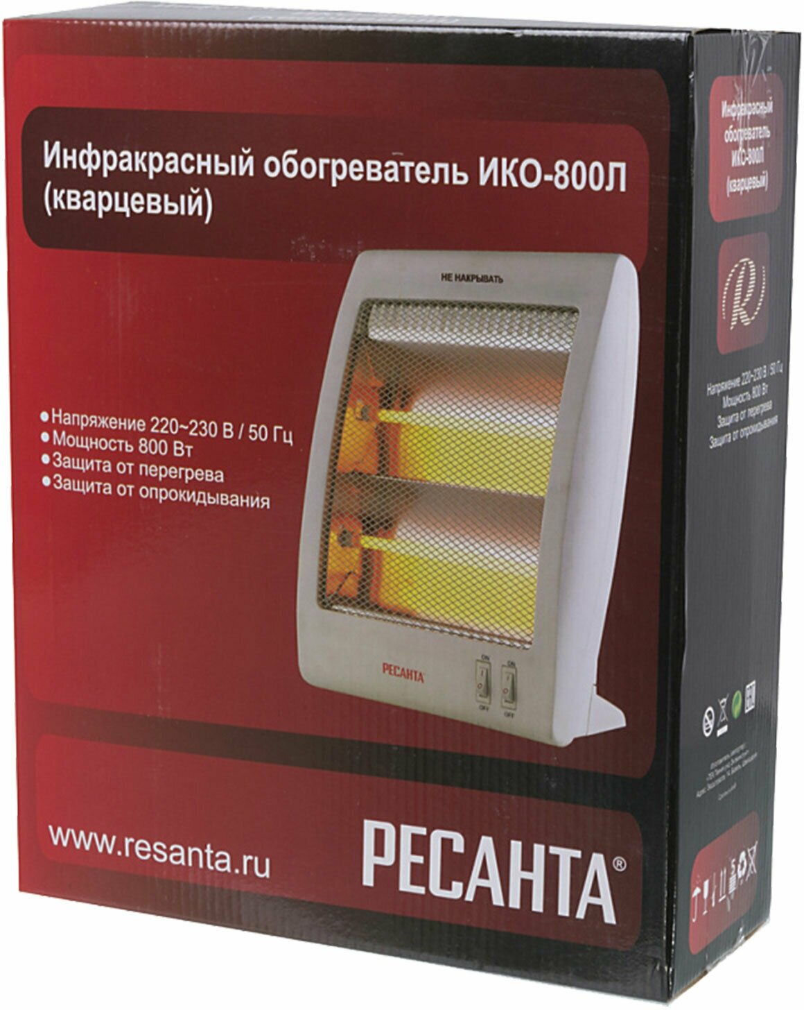 Description: Heater type: infrared, room area: 15 m², power consumption: 0.80 kW, installation: floor, wall, tabletop, protection systems: tip-over shutdown, overheating shutdown, Protection sensor