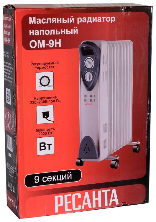 Heater type: oil cooler, room area: 20 m², installation: floor, protection systems: overheat cut-out, features: thermostat