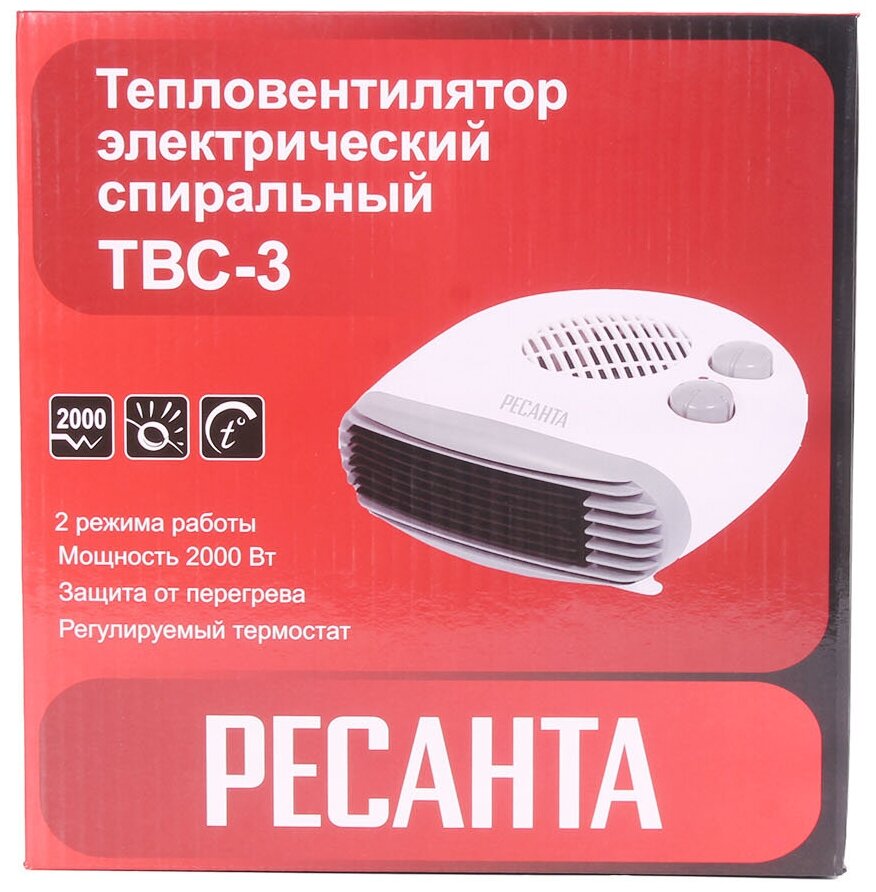 Type of heater: fan heater, room area: 25 m², power consumption: 2 kW, installation: floor, desktop, protection systems: overheating shutdown, control: mechanical, features: temperature control
