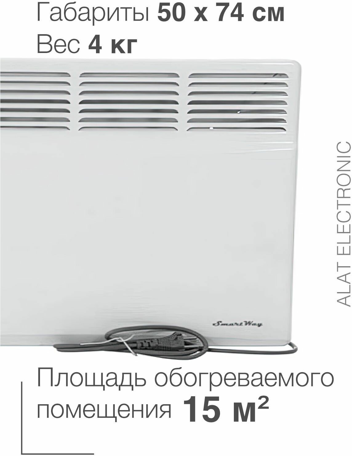 Heater type: convector, room area: 15 m², installation: floor, wall, protection systems: overheating shutdown, control: mechanical, features: temperature control, thermostat, noise level: 1