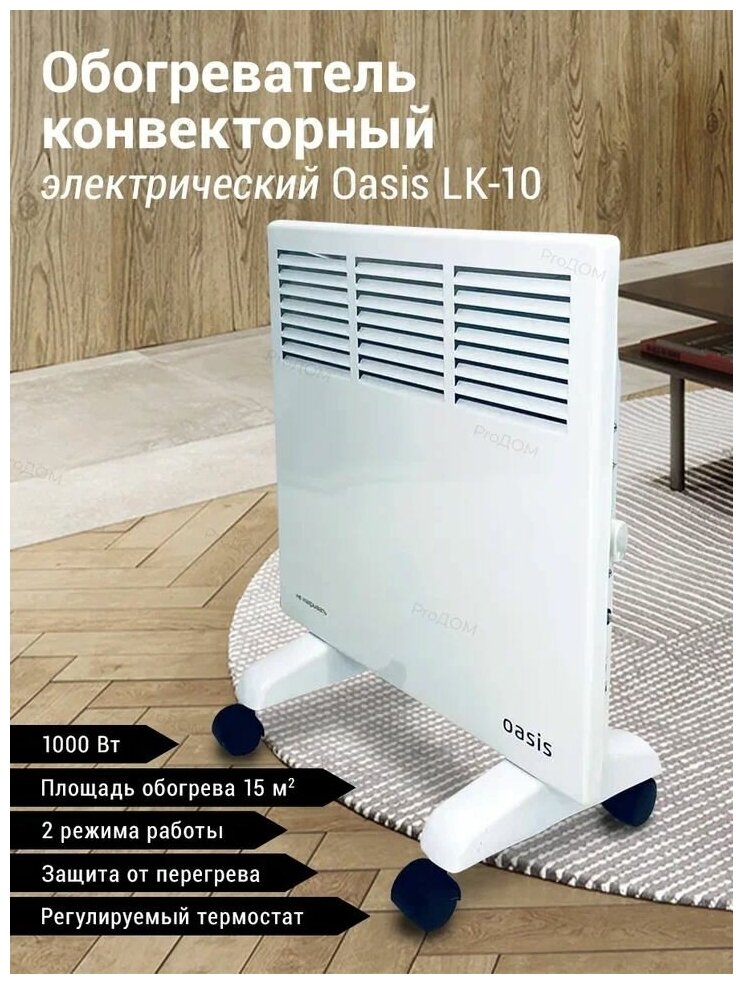 Electric convector heater with thermostat Oasis LK-15 Power 1500 W 20 m2 2 modes Convector Oasis