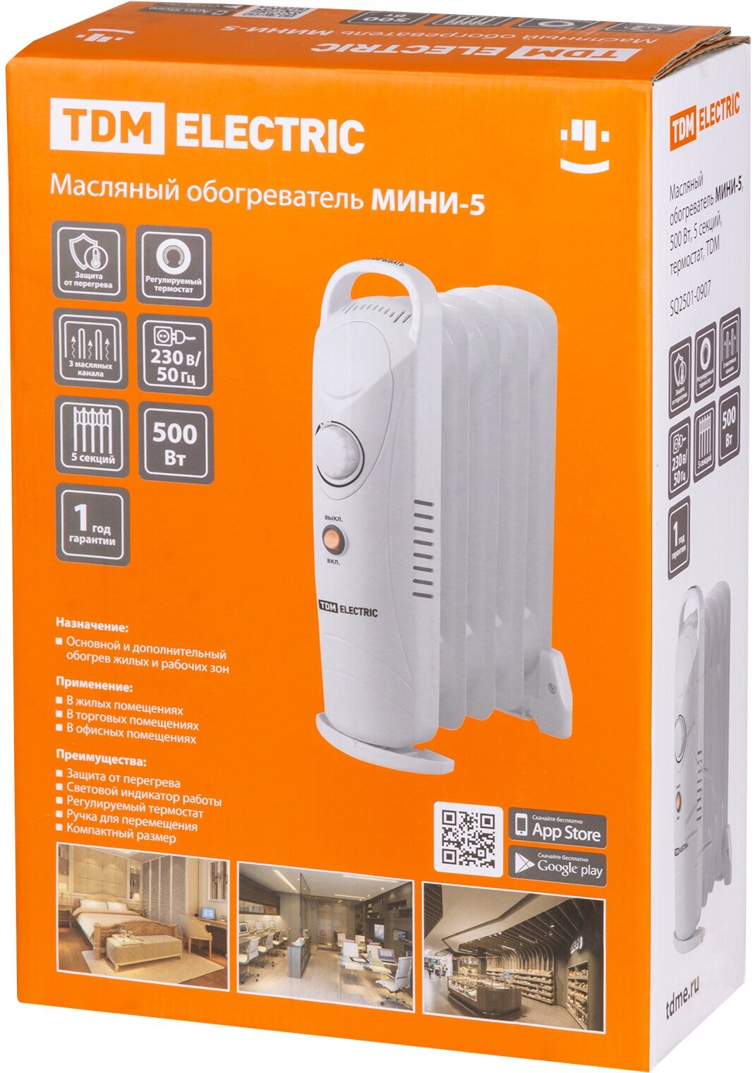 Oil heater MINI-5, 500 W, 5 sections, thermostat, TDM, price for 1 piece